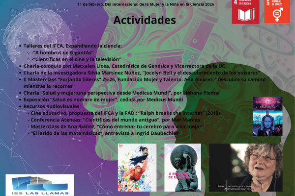 Comienza el ciclo de actividades entorno al 11 de febrero, Día Internacional de la Mujer y la Niña en la Ciencia, organizadas por Mar de la Torre Gómez, coordinadora de Igualdad. Los...